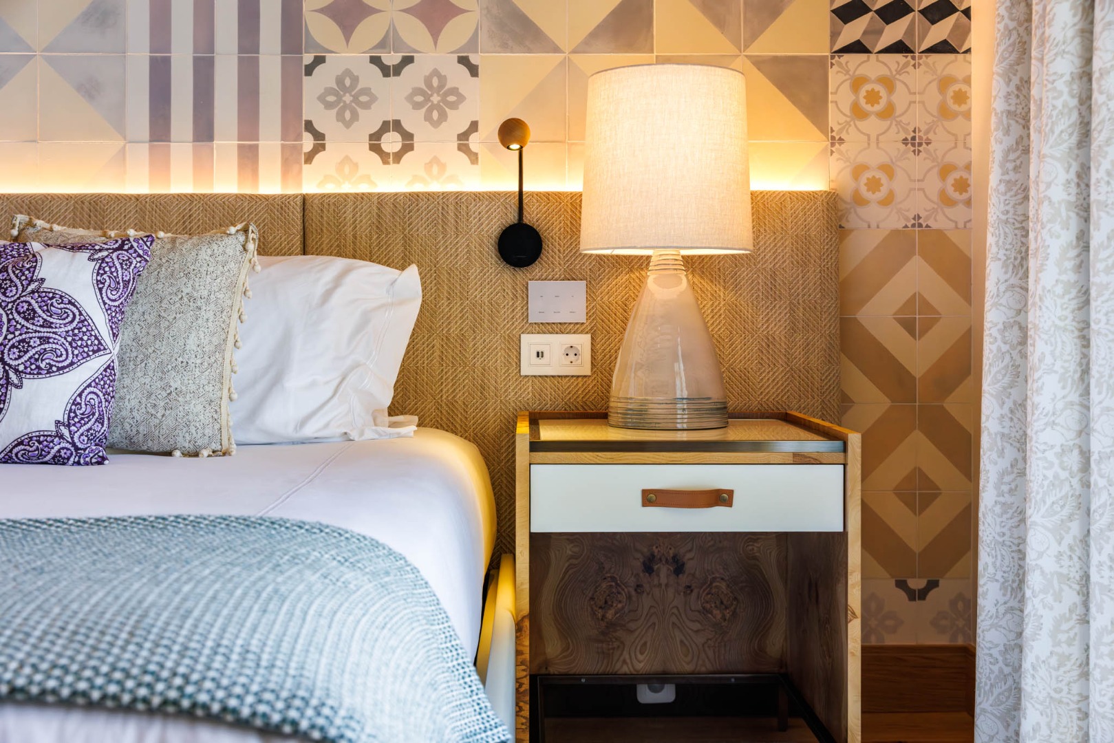 The bedroom, with direct access to a private terrace and a lovely outlook towards the mountains and glimpses of the golf course, is a peaceful sanctuary bathed in natural light, while the bathroom, finished with high-end materials, evokes the tranquillity of a private spa.